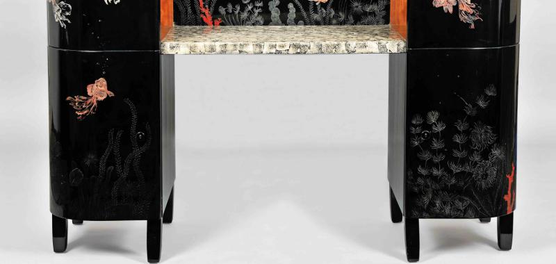 mobiliario reunidas – sillas, biombos o escritorios en madera, primero; en metal, después-, y a los útiles cotidianos de diseño – vasijas, jarrones, copas o perfumes-.