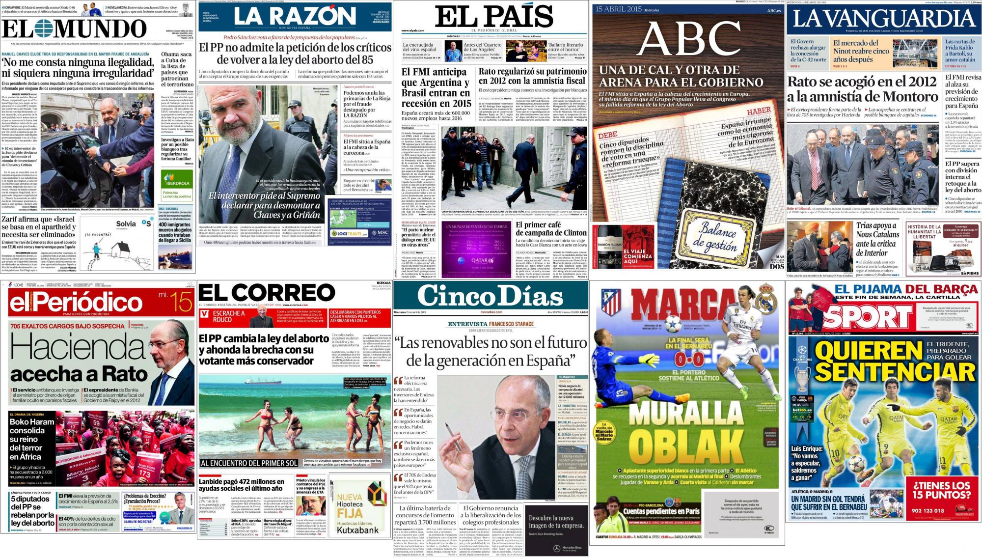 Portadas del miércoles 15 de abril de 2015.