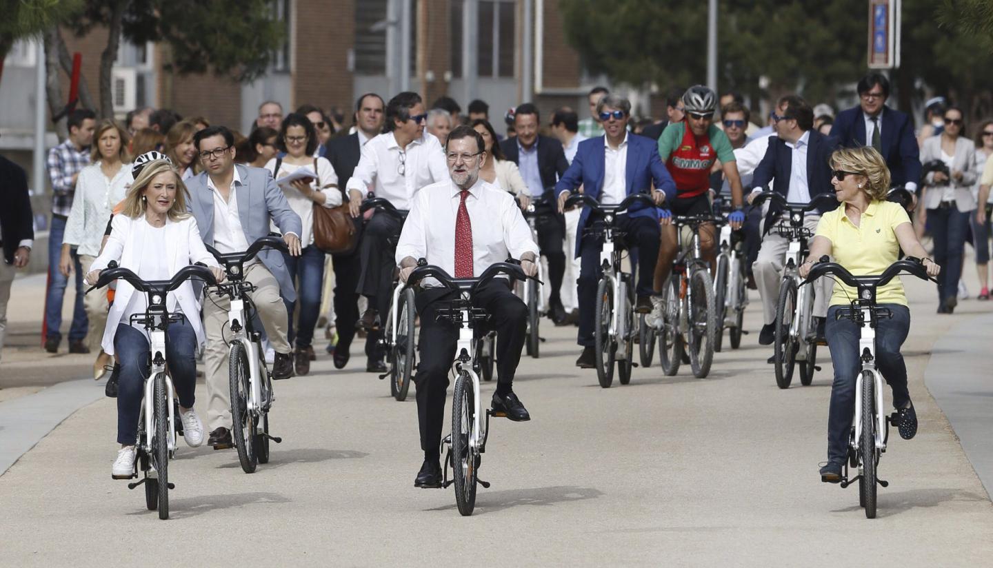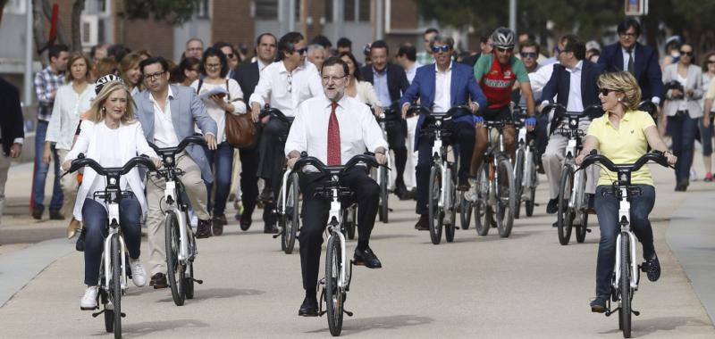 Mariano Rajoy, Cristina Cifuentes y Esperanza Aguirre recorren Madrid Río. Efe