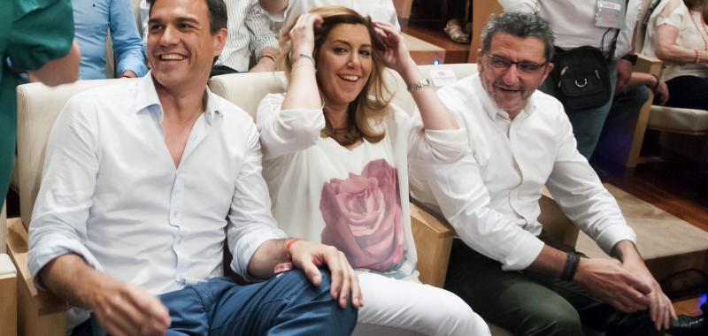 Pedro Sánchez y Susana Díaz compartieron un sólo acto de campaña, en Alcalá de Guadaíra, donde escenificaron su distanciamiento. Efe