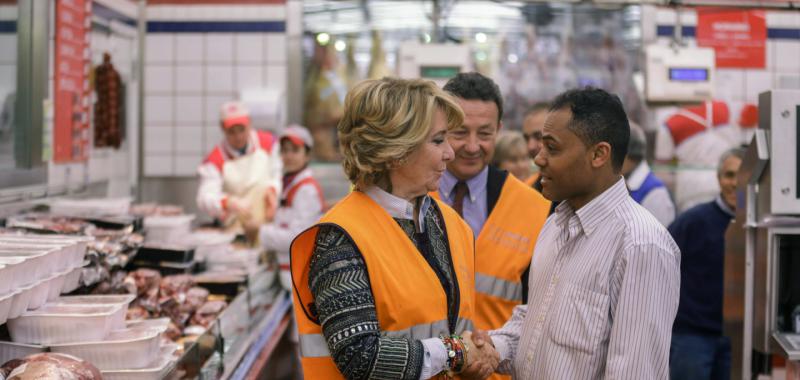 Esperanza Aguirre en Mercamadrid, un día antes del comienzo de la campaña. Efe