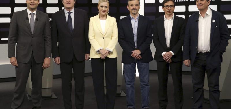 Debate electoral en Telemadrid, celebrado el lunes 11 de mayo, entre los principales candidatos a la Comunidad. Efe