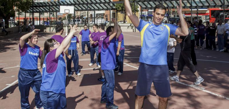 Pedro Sánchez juega en el Centro Estela (Burgos) un partido de baloncesto. Efe