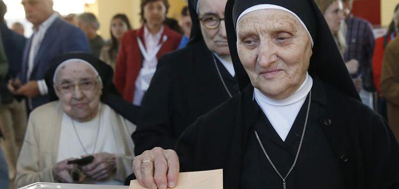 • Una religiosa ejerce su derecho al voto en un colegio electoral de Aravaca (Madrid).