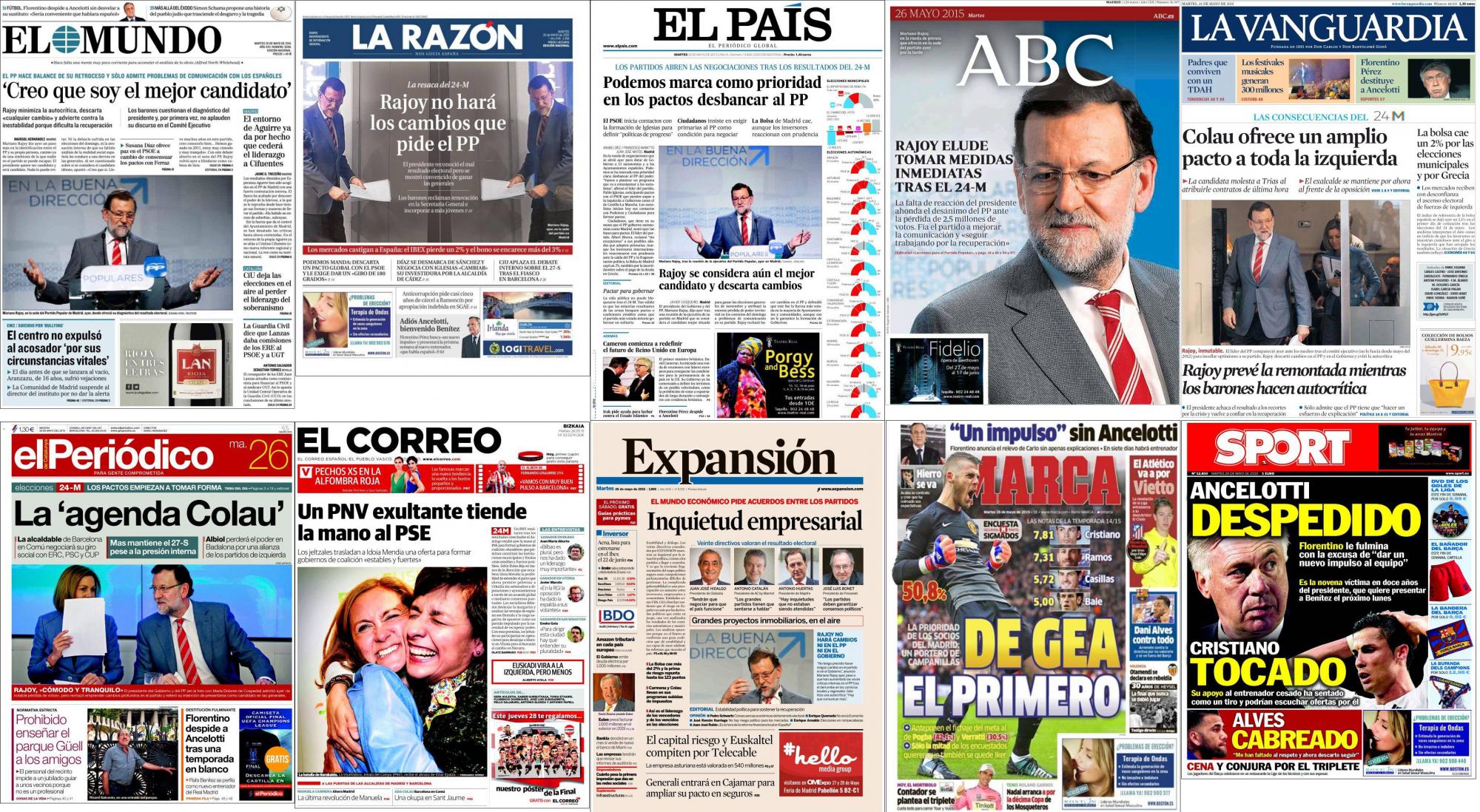 Portadas del martes 26 de mayo de 2015.