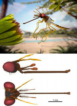 néctar con una larga trompa y que polinizaba gimnospermas, como así consta en un artículo publicado en