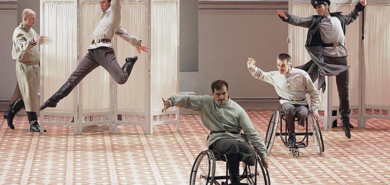 El ballet “Un héroe de nuestro tiempo”, dirigido por Kirill Serebrennikov, sirvió para que por primera vez actuaran en el escenario del prestigioso Teatro Bolshói tres bailarines con discapacidades. Maksim Sedakov, Serguéi Poyunov y Yevgueni Gúsev forman parte del equipo nacional paralímpico ruso y en la obra interpretan el papel de soldados heridos durante su servicio en las montañas del Cáucaso en la época del Imperio ruso, época en que se desarrolla la acción de la novela de Lérmontov. Dos de ellos están, además, amputados. Uno perdió su pierna cuando servía en el ejército ruso y el otro, a causa de un accidente. Según Konstantin Vassiliev, miembro del Comité Internacional Paralímpico, que ha formado a los bailarines discapacitados, los creadores del ballet habían previsto inicialmente contar con bailarines válidos en sillas de ruedas. Sin embargo, ha declarado Vassiliev, "Cuando vinimos a enseñarles lo que somos capaces de hacer, decidieron crear una coreografía más compleja", porque, por otra parte, “no ha habido jamás nada parecido en el mundo".