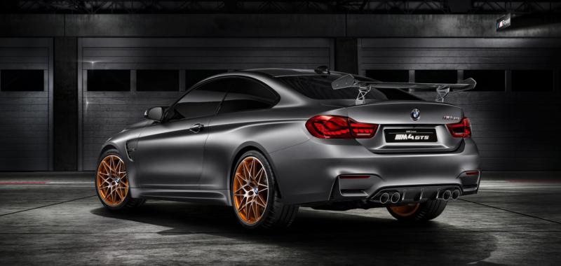 Estéticamente, este Concept M4 GTS se distingue por llevar una pintura en gris oscuro intercalada con detalles en color naranja en el frontal y en las llantas. Además posee unas entradas de aire de mayor tamaño, un deflector delantero regulable para mejorar la canalización del aire, un capó delantero reforzado con fibra de carbono, un alerón de grandes dimensiones también realizado en fibra de carbono, unas pinzas de freno pintadas en color dorado y unos neumáticos de la marca Michelin Sport Cup 2 con medidas 265/35 R19 para el eje delantero y 285/30 R20 para el trasero.