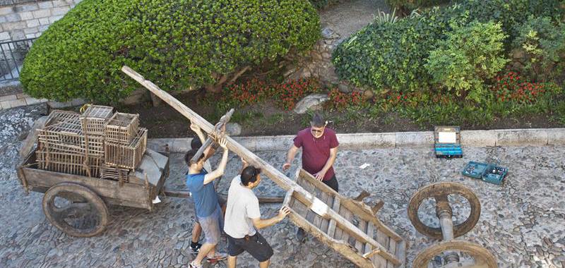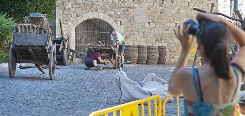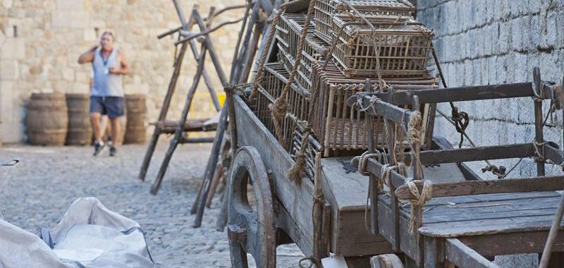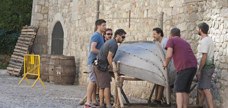 Barcas, toneles de madera, puestos de mercado, mesas y carretas han tomado la calle de Ferran el Catòlic y alrededores; son algunos de los elementos que han empezado a transformar Gerona para llevar a cabo el plan de rodaje, hermético, de esta productora.