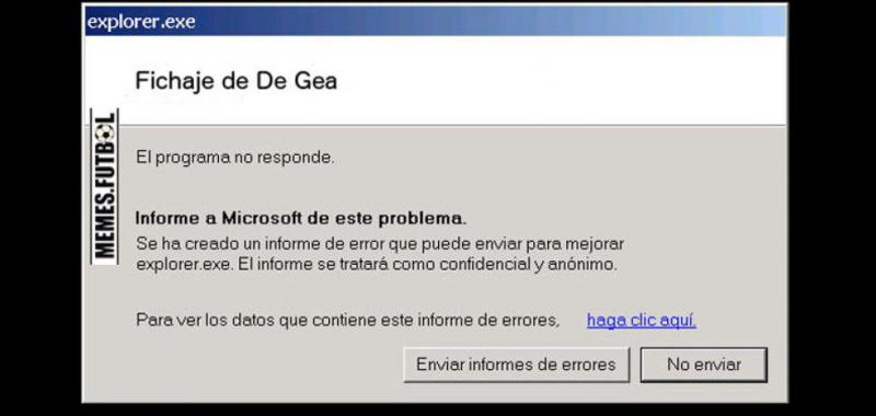 El no fichaje de David de Gea por el Real Madrid -a menos de que triunfe el recurso del club blanco- ha sido objeto de mofa en las redes sociales, especialmente porque tras un largo verano todo se hizo a última hora, llegando la contratación -por fax- 28 minutos tarde. Estos son sólo algunos de los 'memes' que, estos sí, no tardaron ni un minuto en 'adornar' la noticia.