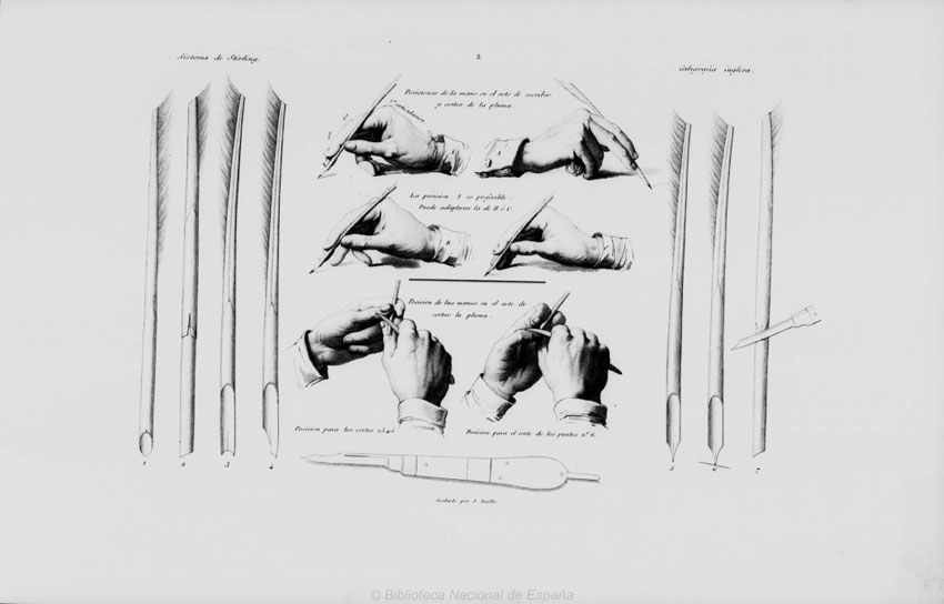 Desde el origen de las artes de escribir en la Península Ibérica, con Juan de Iciar, Guiral de Valenzuela o Francisco Lucas, "España desarrolla un enorme trabajo en esta disciplina, convirtiéndose los calígrafos en formadores y examinadores de maestros, e influyendo en la pedagogía española". La destreza que demostraron con el cálamo y la pluma hicieron de algunos de ellos auténticos maestros, tanto de la escritura como del dibujo y el grabado.
