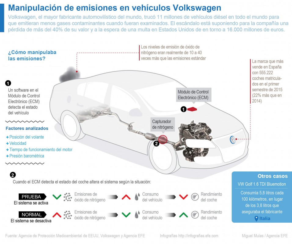 Volkswagen ha reconocido que, mediante un software, ha manipulado durante años los datos sobre emisiones de 465.000 vehículos diésel en Estados Unidos de los modelos Golf, Jetta, Passat y Beetle, así como del Audi A3 (la marca de los cuatro aros perteneciente al Grupo).