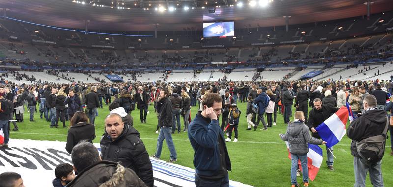 Los espectadores del Francia - Alemania que tuvo lugar en el Stade de France quedaron pendientes de que las autoridades les dejaran salir hasta que se redujera el riesgo de atentado. (EFE)