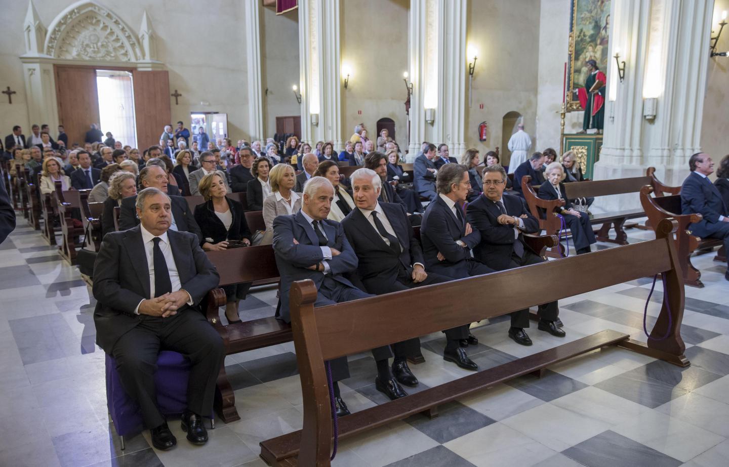 A la misa ha asistido medio centenar de personas, amigos de la familia, vecinos del barrio y amigos de la duquesa como el periodista Antonio Burgos, la benefactora de la asociación para los niños con cáncer Andex, María Luisa Guardiola, o el modisto José Luis Medina del Corral, de Vittorio y Luchino, quien ha asegurado que su ausencia se nota por la cantidad de actos sociales y benéficos en los que participaba, y que esa ausencia se comprueba "cuando se pasa por Dueñas y se nota una tristeza muy grande".