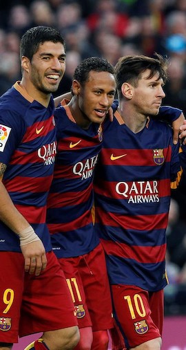 Goles: 1-0, min.21: Neymar; 2-0, min.41: Suárez; 3-0, min.52: Neymar; 4-0, min.91: Messi.