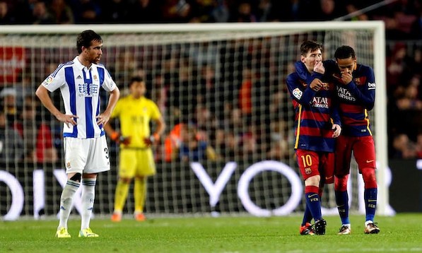 El equipo de Luis Enrique no cede en su intento monopolítistico por imponer su estilo a cualquier oponente que se cruce. Iniesta, Neymar y Suárez volvieron a sobresalir en la goleada asestada a una Real Sociedad valiente, que no ha de sacar demasiadas conclusiones negativas a su correcto despliegue. Messi cerró el 4-0 en su partido 600 como profesional y el líder alimenta su aureola de exquisitez.