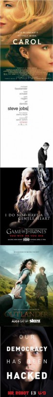 Las mejores películas y series del año han sido seleccionadas para formar parte de la lista de nominados a los Globos de Oro, que ha sido dada a conocer este jueves. Carol, Steve Jobs o The Revenant son algunas de las cintas favoritas junto a Mr. Robot, Transparent o Outlander en el apartado de televisión.