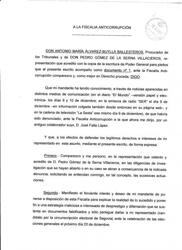 En los archivos adjuntos publicamos el documento íntegro que Pedro Gómez de la Serna ha remitido a la