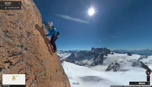 La colaboración con estos aventureros ha permitido al equipo de Street View "capturar el espíritu del macizo de la misma manera que solo lo habían podido disfrutar hasta ahora unos pocos privilegiados: corriendo sobre la cima con Kilian Jornet — que tiene el réord de velocidad en ascenso y descenso del Mont Blanc –, escalando sobre bloques de hielo con el alpinista Ueli Steck o caminando con la nieve hasta las rodillas junto a la 14 veces campeona de esquí de montaña Laetitia Roux, acompañados del famoso guía Patrick Gabarrou", cuenta Google en su blog.
