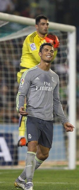 Benzema también manifestaba su calidad en la lectura de las situaciones, retrasando su posición para enganchar la creación y el remate. Cristiano se aprovechó de tal movimiento de verticalidad central para chutar con deficiencia, demasiado cruzado, el mano a mano facilitado por el galo en el 31. A continuación, un córner botado por el cafetero madridista y cabeceado fuera por Pepe, de manera incomprensible -en solitario y entrando desde el segundo poste-, completaba el paisaje general que definiría el tipo de escena hasta el intermedio. El lanzamiento desde 35 metros de Ronaldo –un tanto desconectado de la movilidad de sus compañeros de frente ofensivo y desacertado en la ejecución- que lamió el poste en el 35 bajaría el telón de los acercamientos antes de la entrada a vestuarios.