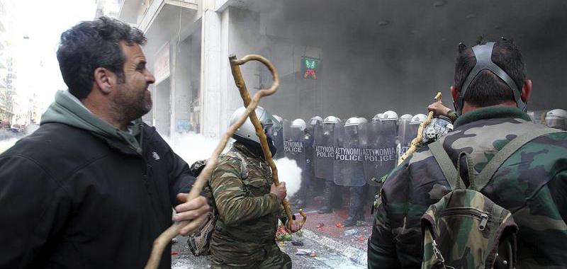 Centenares de agricultores llegados desde la isla de Creta protagonizaron este viernes enfrentamientos con la Policía en Atenas. La Policía respondió lanzando gases lacrimógenos y bombas aturdidoras.