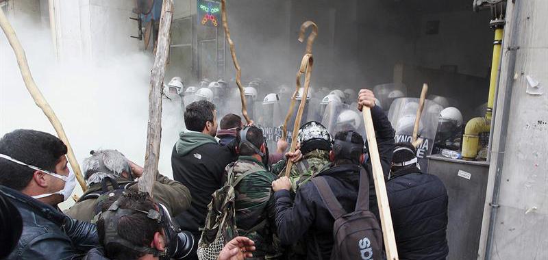 Centenares de agricultores llegados desde la isla de Creta protagonizaron este viernes enfrentamientos con la Policía en Atenas, donde acudieron para participar en una concentración contra la reforma de las pensiones que el Gobierno negocia con los acreedores del país.