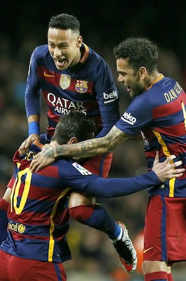 Barcelona: Bravo; Alves (Aleix Vidal, min.61), Piqué, Mascherano, Alba; Busquets, Sergi Roberto (Rakitic, min.61), Iniesta (Arda, min.77); Messi, Suárez y Neymar.