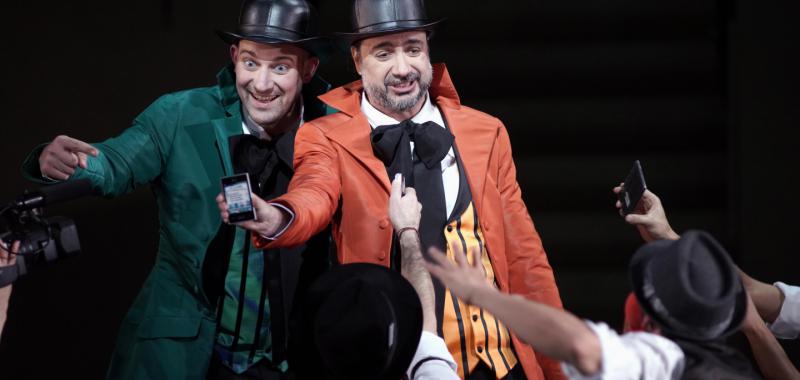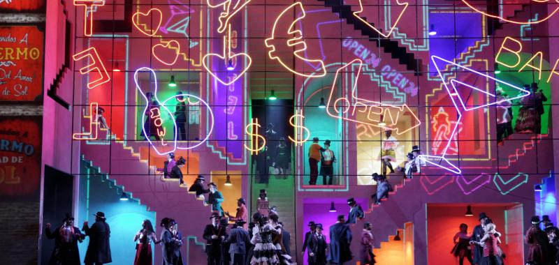 A pesar de tratarse de un tópico, esta joven ópera de Wagner vuelve a demostrarnos lo poco que los sentimientos, las pasiones, los pecados y las miserias del ser humano han cambiado a lo largo de los años, por mucho progreso que podamos reivindicar en otros aspectos de la vida. Así, acierta el director de escena danés Kasper Holten – director de la Royal Opera House londinense - al subrayar que en lo que se refiere a las relaciones amorosas o sexuales lo único que realmente ha cambiado es la forma utilizada por los amantes para concertar sus citas. Holten pone en manos de los palermitanos del siglo XIX de esta producción los actualmente indispensables Smart-phone con sus múltiples funciones y, cómo no, las redes sociales, que sirven incluso para proclamar bandos o prohibir, como en este caso, los carnavales y las relaciones amorosas. De modo que en un decorado diseñado por Steffen Aarfing, caracterizado por distintos niveles de escaleras y pequeñas habitaciones que sirven, gracias a una estudiada iluminación, para albergar los abarrotados bares del barrio rojo de Palermo – Wagner trasladó la acción de la obra de Shakespeare de Viena a Sicilia – y también las celdas del convento, los intérpretes se envían whatsapp o se llaman con sus móviles, sin que al hacerlo nos resulte demasiado extraño lo que dicen, porque hoy en día también podrían decirlo amantes, más o menos ocasionales, en ese crucial momento en el que se enciende la conocida y por desgracia fugaz pasión que todo lo domina. Es decir, para convencer al que más se hace rogar.