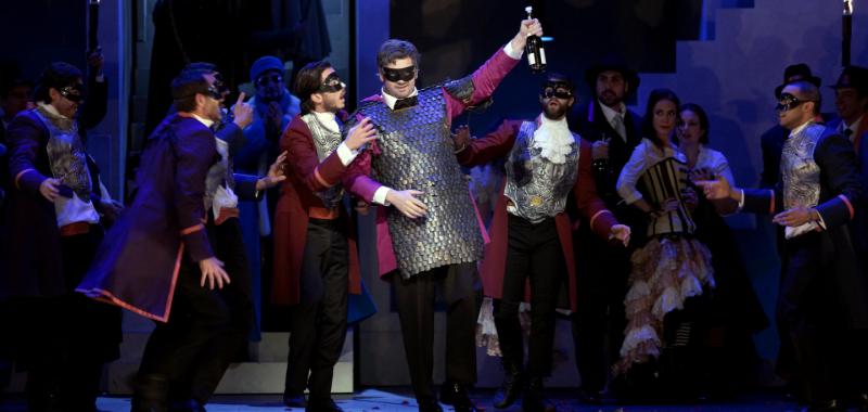 Holten, salvo los primeros momentos de la obra en los que recurre a un ir y venir caótico y absurdo que no aporta nada, encuentra enseguida el rumbo y la escena ya no se pierde, sino que incide de forma inteligente en el aspecto más humorístico de la ópera con evidentes guiños a la actualidad, convirtiendo al rey de Sicilia, que vuelve a casa para regocijo de sus habitantes, hartos ya de la hipocresía de Friedrich y sus acólitos al mando de la ciudad en ausencia del monarca, en la mismísima e inconfundible Angela Merkel. Una generosa versión de la misma, por cierto, ya que llega repartiendo billetes, magnánima y comprensiva ante las ganas de carnaval de los sicilianos. Holten hace referencia, precisamente, a esta eterna diferencia entre el Norte y el Sur de Europa para reafirmar la vigencia de un tema que ya trató Wagner en su propia visión de la época que él vivió y que aún sigue provocando que unos y otros, europeos todos, sigamos mirándonos con desconfianza. En definitiva, austeridad frente a hedonismo siguen siendo los tópicos que no logramos congraciar para hacernos fuertes como Unión.