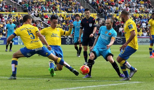Luis Enrique Martínez prosiguió con su dinámica de reparto de esfuerzos en la visita más larga y cansada que le marca el calendario de Liga. Eligió, en este caso, otorgar respiro a Busquets, Piqué y Rakitic, buena parte de la columna vertebral de su obra. Incluyó en liza, por tanto, a un Sergi Roberto de vuelta al mediocentro, a Mathieu como pareja de Mascherano y a Arda Turan en un rol más de ida y vuelta que la atribución talentosa que idealizó el turco a su llegada a Can Barça. Alba y Alves recobraban el cariz titular y la línea ofensiva más abrasiva del presente siglo volvía a atravesar el paso de los minutos impermeable a las rotaciones. Buscaría el líder implementar una reproducción de su dictado del tipo de duelo en una anunciada discusión en torno a la posesión de la pelota. La presumible exigencia táctica a la que se vería conducido su sistema debía mostrar la riqueza de variantes que cimentan la seguridad y detección de soluciones que lanza al campeón de todo. Esta prueba canaria a la consistencia y regularidad del gigante fiscalizaría, casi como en cada uno de los últimos partido como visitante, la vigencia del compromiso y automatismos sin balón y la pericia camaleónica de un libreto que también golpea por el cauce del repliegue, robo y salida vertiginosa. Eludir la influencia de lo improvisado en la configuración completaba la hoja de ruta catalana.