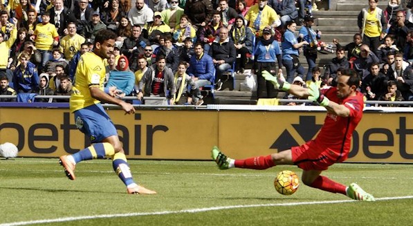 El postrero chut de Roque Mesa que rozó diana como colofón a un respingo final de primer tiempo volcánico mandó a los vestuarios a ambos equipos y clausuró un excepcional primer tiempo. El atrevimiento local consiguió condicionar la línea argumental prototípica de un Barcelona al que sostuvo su eficacia de cara a portería, en un nuevo ejercicio forzado de obviedad del carácter monopolístico en el uso del balón. El cansancio de las esforzadas piernas del creativo centro del campo isleño jugaría a favor del bloque catalán, pero Lucho no esperó al decantar de los minutos y reafirmó su perfil proactivo sacando del campo a Arda -intrascendente con y sin pelota, todavía descontextualizado del ritmo con que se maneja su nueva plantilla- e introduciendo en la fórmula a Ivan Rakitic, elemento equilibrante y opción preclara de atino en el último tercio de cancha, llegando desde segunda línea.
