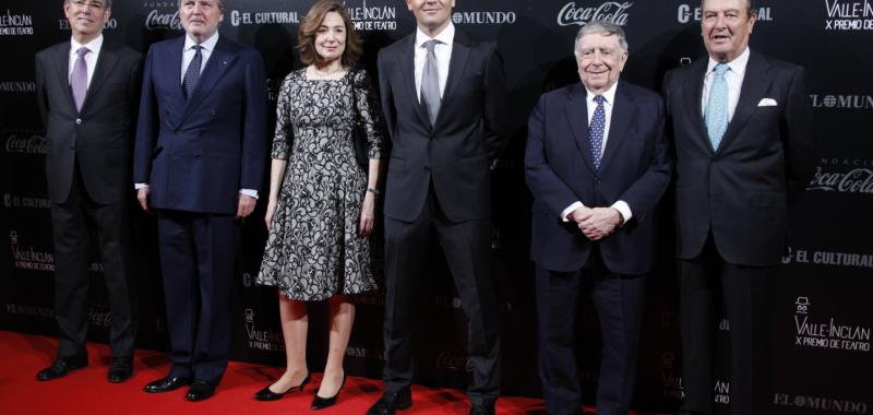 • El presidente de Unidad Editorial, Antonio Fernández-Galiano; el ministro Iñigo Méndez de Vigo; la directora de El Cultural, Blanca Berasátegui; el director de El Mundo, David Jiménez; el académico y presidente de El Imparcial, Luis María Anson; y el presidente de la Fundación Coca-Cola, José Núñez Cervera. Foto Juan Pablo Tejedor.