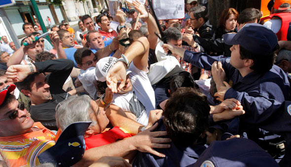 En Sevilla, los enfrentamientos entre las fuerzas de seguridad y los profesionales de la pesca provocaron siete detenciones y 26 heridos, entre ellos un policía nacional que se encuentra grave al haberle estallado un petardo en la cara. Los siete pescadores detenidos pasaron la noche en el juzgado de guardia de la ciudad, y hoy serán puestos en libertad con cargos.