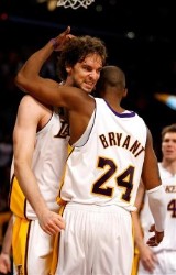 Gasol, muy activo a ambos lados de la cancha, y Bryant, con cuatro triples, 15 puntos y un auténtico recital de juego en el primer cuarto, parecían querer repetir el guión del pasado jueves, aunque esta vez no estaban dispuestos a que el final les deparase otra desagradable sorpresa, a pesar de que en ocasiones, apuntaba a ello.