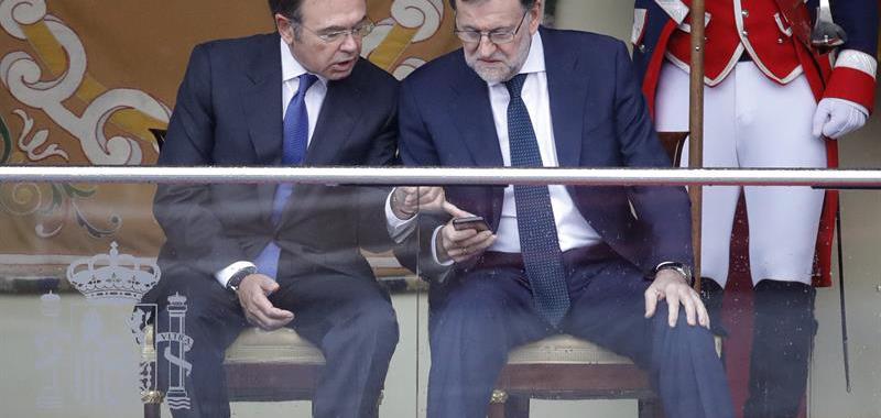 El presidente del Gobierno en funciones, Mariano Rajoy (d), y el presidente del Senado, Pío García-Escudero (i), al inicio del desfile militar.EFE