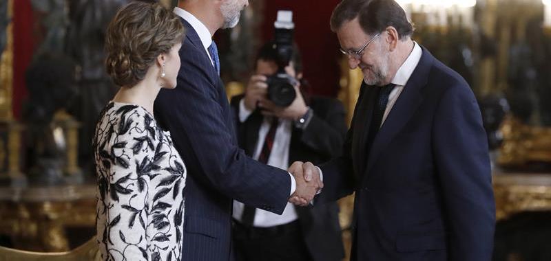 Mariano Rajoy saluda al Rey Felipe VI en la recepción oficial en el Palacio Real. EFE