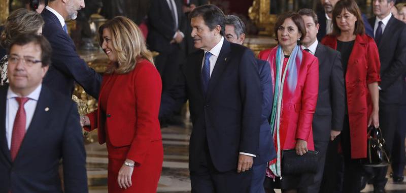 La presidenta andaluza, Susana Díaz y el presidente de la gestora del PSOE, Javier Fernández, en la recepción con los Reyes