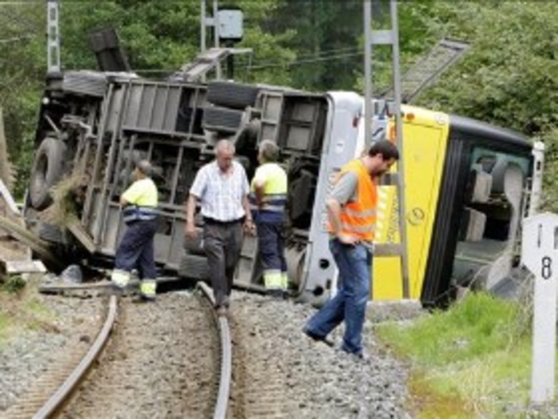 Tanto el tráfico rodado como el ferroviario permanecen cortado desde entonces y a las 15.50 horas las grúas seguían trabajando en el lugar para retirar el autobús siniestrado.