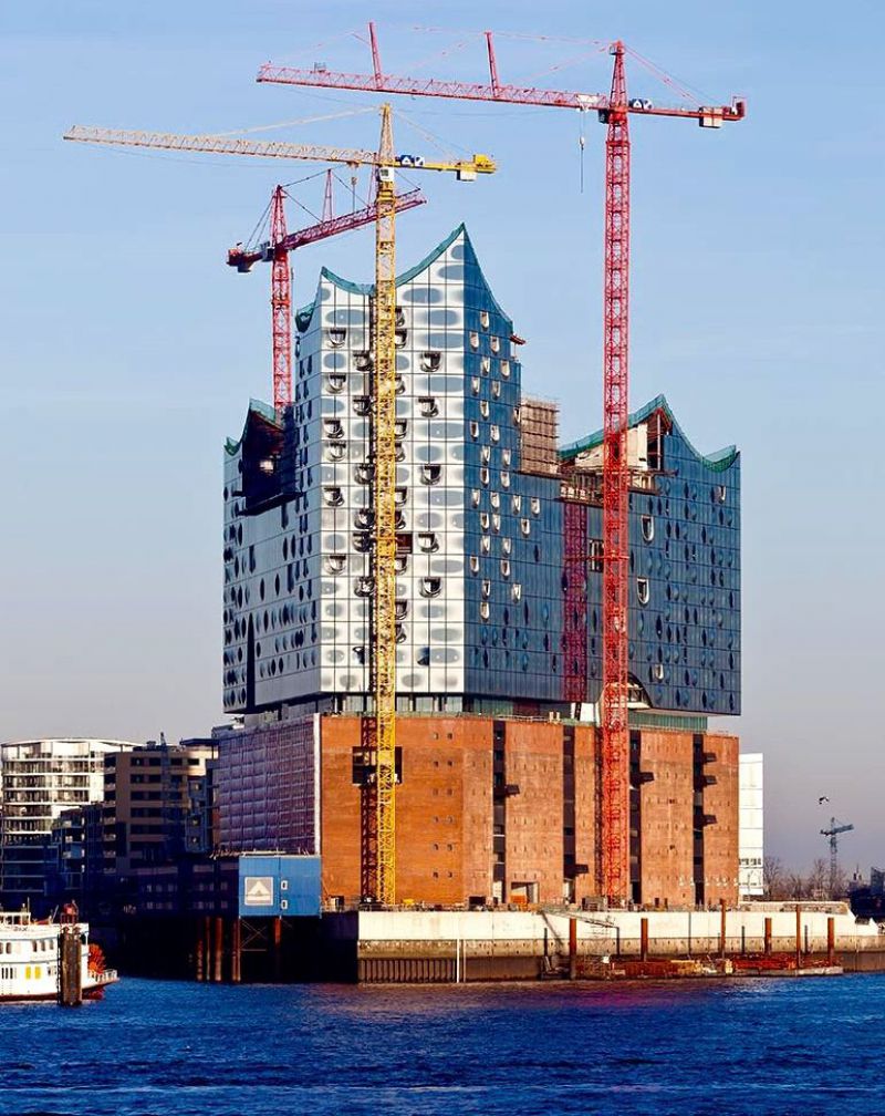 La espera para vivir ese momento se había prolongado 14 años, desde que en 2003 se encargó su diseño al prestigioso grupo suizo de arquitectos integrado por Jacques Herzog y Pierre de Meuron, con sede en Basilea, sucursales en Madrid, Pekín, Londres y Nueva York y originales edificios construidos por todo el mundo, como el Caixa Forum madrileño, las bodegas Dominus de California y la que ha sido una de sus obras más emblemáticas: la ampliación de la Tate Modern en Londres. Precedidos por su merecida fama y en el marco del proyecto urbanístico conocido como HafenCity, el Gobierno de Hamburgo aprobó en 2002 la construcción de la Filarmónica del Elba diseñada por Herzog & de Meuron. Sobre un antiguo depósito del puerto de Hamburgo se levantaría una enorme vela de vidrio para albergar una gran sala de conciertos, oficinas y un hotel. Una obra que debería haber puesto la última piedra en 2009 a un precio de 77 millones de euros - 65 de ellos aportados por acaudaladas y generosas familias de Hamburgo -, pero que disputas entre administración, constructora y arquitectos, así como diversos problemas legales, retrasaron y aumentaron, por supuesto, el coste presupuestado. Primero se elevó a 320 millones, luego hasta los 585 y, cuando alguien se percató de que no se habían calculado los impuestos, quedó en 789 millones. En definitiva, 10 veces más.