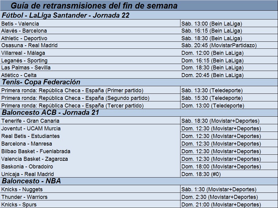 Guía de las retransmisiones deportivas