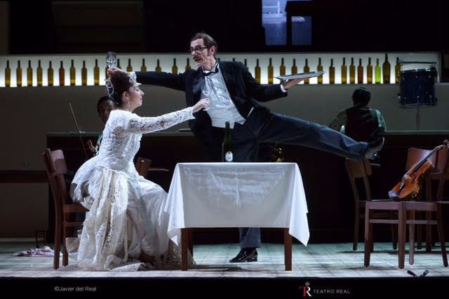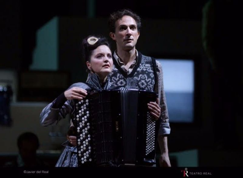 Santa María, la ciudad de ficción imaginada por Onetti y en la que situó muchos de sus relatos, es por supuesto la ciudad de las mentiras. Una mentira que todo lo abarca y podría hacer las veces de eje de coherencia para seguir el núcleo de la trama – el desasosiego existencial -, aunque, por desgracia, desde el principio, la desconexión vaya ganando terreno y acabe por mandar sin paliativos en la obra. De tal forma, además, que la sensación es que la obra se queda en la superficie, incapaz de profundizar en tan trascendental tema y que la acción ni avanza ni retrocede: da vueltas alrededor de sí misma en un extraño bucle que bebe de una vanguardia extremadamente rococó, insistiendo en un absurdo que para quienes acortaron la velada en teatro de la Plaza de Oriente era más bien un luminoso de neón apuntando a la salida. “Estoy seguro de que todo tiene un sentido”, repetía uno de los personajes, pero para buena parte del público – la que no se daba por vencida – resultaba harto difícil encontrarlo. El cisma entre lo que parecía que quería contarse sobre las tablas y lo que lograba llegarle al respetable, se convertía a cada paso en abismo. Un talud difícil de salvar que finalmente se tradujo en más abucheos que aplausos – también los hubo y se escucharon -, salvo para el responsable musical de la producción, Titus Engel, que también dirigió en 2012 el estreno mundial de La página en blanco de Pilar Jurado, el más unánimemente premiado.