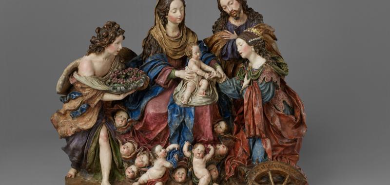 • Los desposorios místicos de santa Catalina. Luisa Roldán, la Roldana. Terracota policromada, 1692-1706. Nueva York, The Hispanic Society of America
