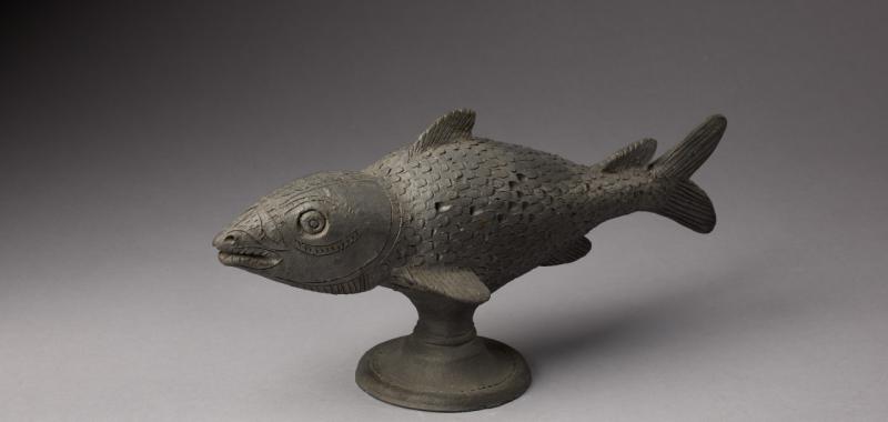 • Escultura de pez. Arcilla micánea negra, Tonalá, México, h. 1650. Nueva York, The Hispanic Society of America