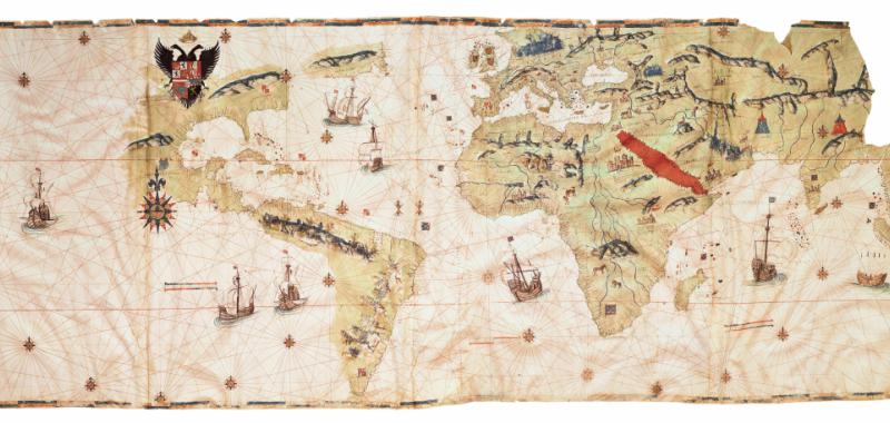 • Mapamundi. Vespucci, Juan. Sevilla. Manuscrito sobre pergamino. h. 1526. Nueva York, The Hispanic Society of America.