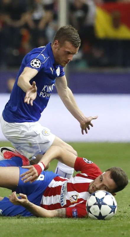 Con Filipe Luis y Juanfran incorporados a la asociación coral y Koke y Griezmann fluctuando ente líneas, el ejercicio de personalidad local constriñó al vigente campeón de la Premier a achicar agua en los primeros 20 minutos. Así, Schmeichel estrenó sus guantes en el minuto 3, en la inauguración de la tormenta que se le venía. El pichichi de la pasada Eurocopa filtró un pase venenoso que Torres encañonó, angulado, a las manos del meta danés. A continuación, Koke descerrajó un derechazo que restalló en el poste -minuto 4- y Carrasco cazó un centro lanzado desde la izquierda para lamer el lateral de la red. El propio Antoine y Saúl lo probrarían, por encima del travesaño, desde media distancia y antes del cuarto de hora. Sólo había descolgado el bloque azul un pelotazo que ganó Vardy a Godín y Savic (batalla ésta deliciosa y perenne) para chutar fuera de tino -minuto 2-. El representante español llevaba la iniciativa, con fluidez, y sólo aceleraba en tres cuartos de campo, mientras que los ingleses se aferraban al catenaccio y a la astucia de su punta. Como en tantas otras ocasiones.