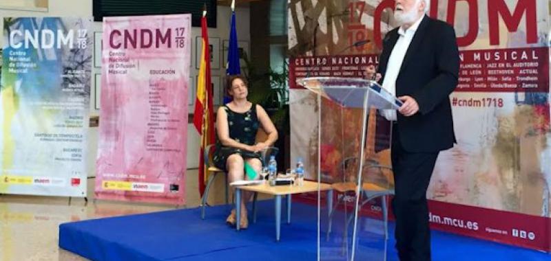 La Directora General del INAEM, Montserrat Iglesias junto a Antonio Moral, director del Centro Nacional de Difusión Musical, han presentado este martes en rueda de prensa la próxima temporada de este centro. El CNDM, unidad dependiente del Instituto Nacional de las Artes Escénicas y la Música (INAEM), propone para su octava temporada un intenso y extenso programa que mantiene su espíritu de recuperar y difundir nuestro vasto patrimonio histórico y las músicas cultas de raíz popular como el flamenco y el jazz, incentivar la composición actual y atraer a nuevos públicos hacia la música clásica, o aquellos géneros menos frecuentes, a través de las diversas actividades organizadas de forma autónoma o en colaboración con más de un centenar de instituciones nacionales e internacionales. La temporada 2017/18 está conformada por un total de 330 actividades diferentes con un programa que se desarrollará en Madrid capital y en otras 27 ciudades españolas de 13 comunidades autónomas, a las que hay que añadir una ciudad americana, Bogotá, y 9 europeas en 9 países, Bruselas, Bucarest, Frankfurt, Luxemburgo, Lyon, Milán, Sofía, Trondheim y Elvas.