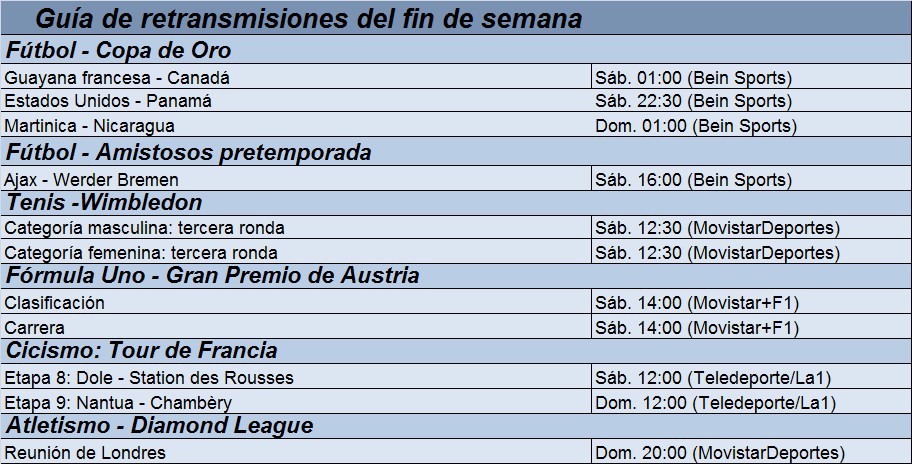Guía de las retransmisiones deportivas del fin de semana: F-1, Tour y Wimbledon