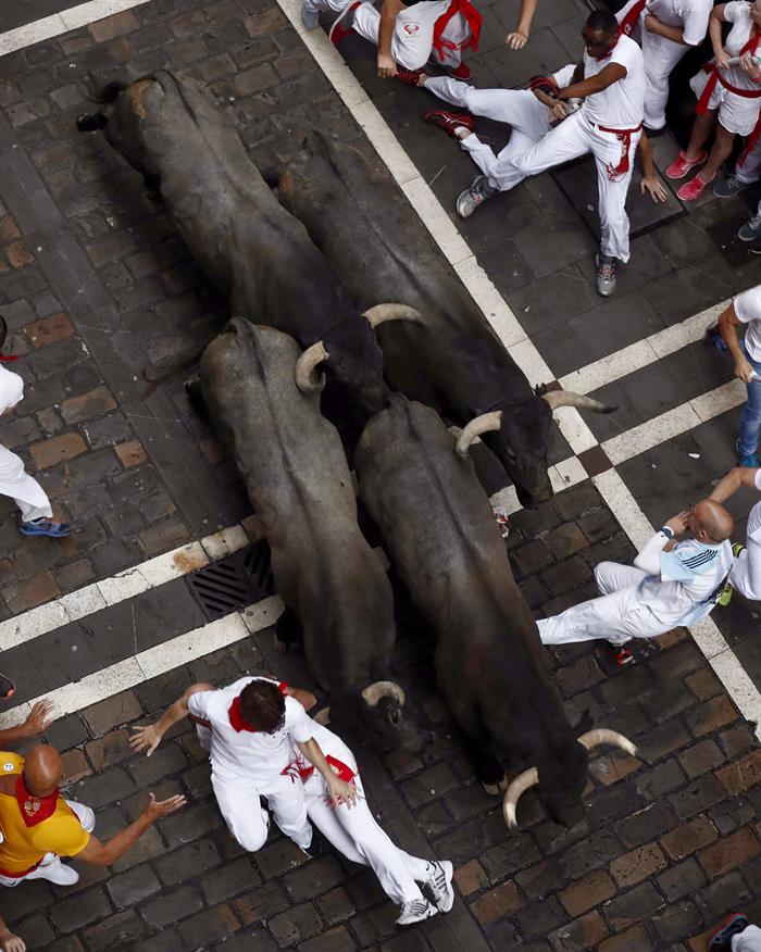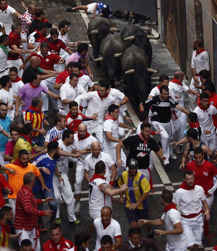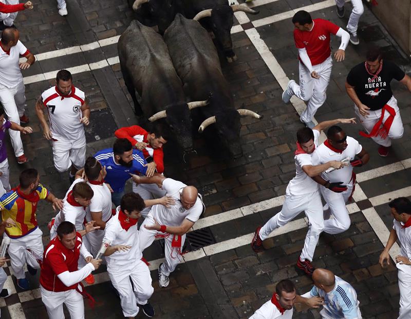 Según Cruz Roja Navarra, ha sido atendido un joven por herida por asta en el brazo izquierdo en el tramo de Ayuntamiento, donde también ha recibido asistencia otra persona con una contusión craneal. En Mercaderes ha recibido asistencia otra persona por cornada en el glúteo y otros dos con policontusiones.