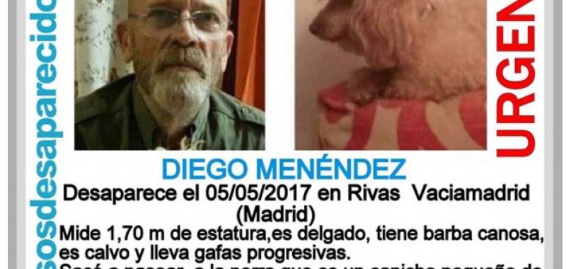 Diego Menéndez, enfermo de Alzhéimer, salió a pasear a su perra, un caniche pequeño de color canela llamado "Mani", el 5 de mayo de este año 2017 en el madrileño municipio de Rivas Vaciamadrid. No se ha vuelto a saber de él.