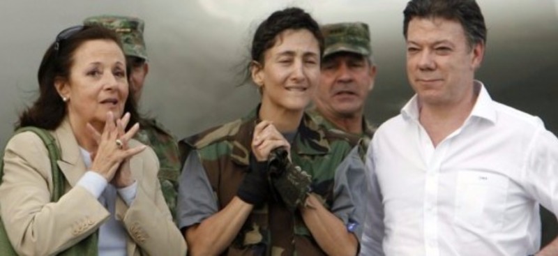 El ministro señaló en una rueda de prensa que la ex candidata presidencial colombo-francesa, cautiva desde febrero de 2002, y los estadounidenses Thomas Howes, Keith Stansell y Marc Gonsalves, secuestrados en el 2003, fueron liberados en un campamento de las Fuerzas Armadas Revolucionarias de Colombia (FARC).